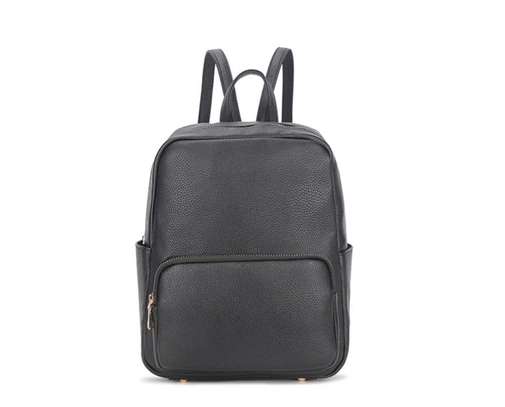 Crafted from soft, durable faux leather with a structured shape, it features multiple compartments, a front zip pocket, side pockets, adjustable shoulder straps, and gold-tone hardware. Ideal for keeping your essentials organised and close at hand while looking effortlessly stylish.